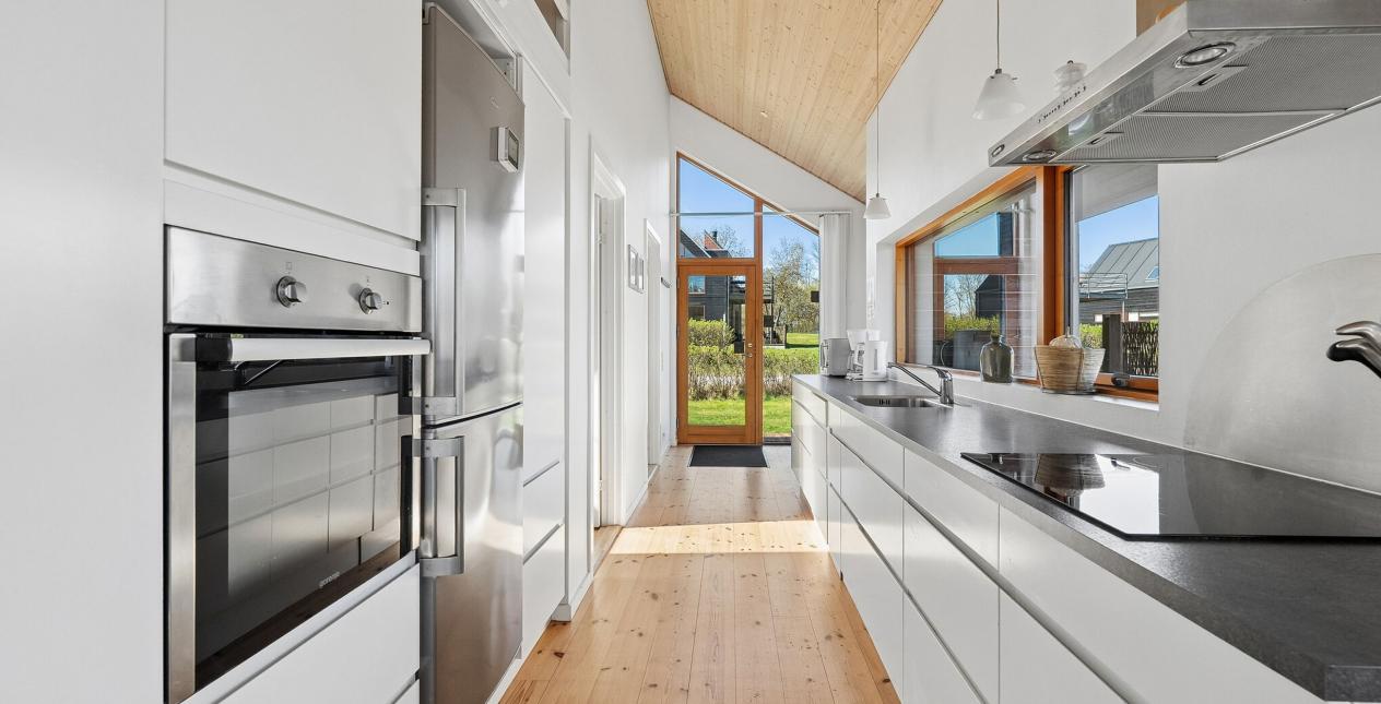 Huset står flot nymalet udvendigt, flotte trægulve og er funktionelt og moderne indrettet i eet plan: