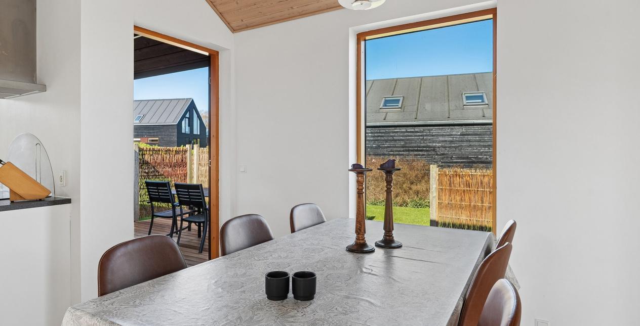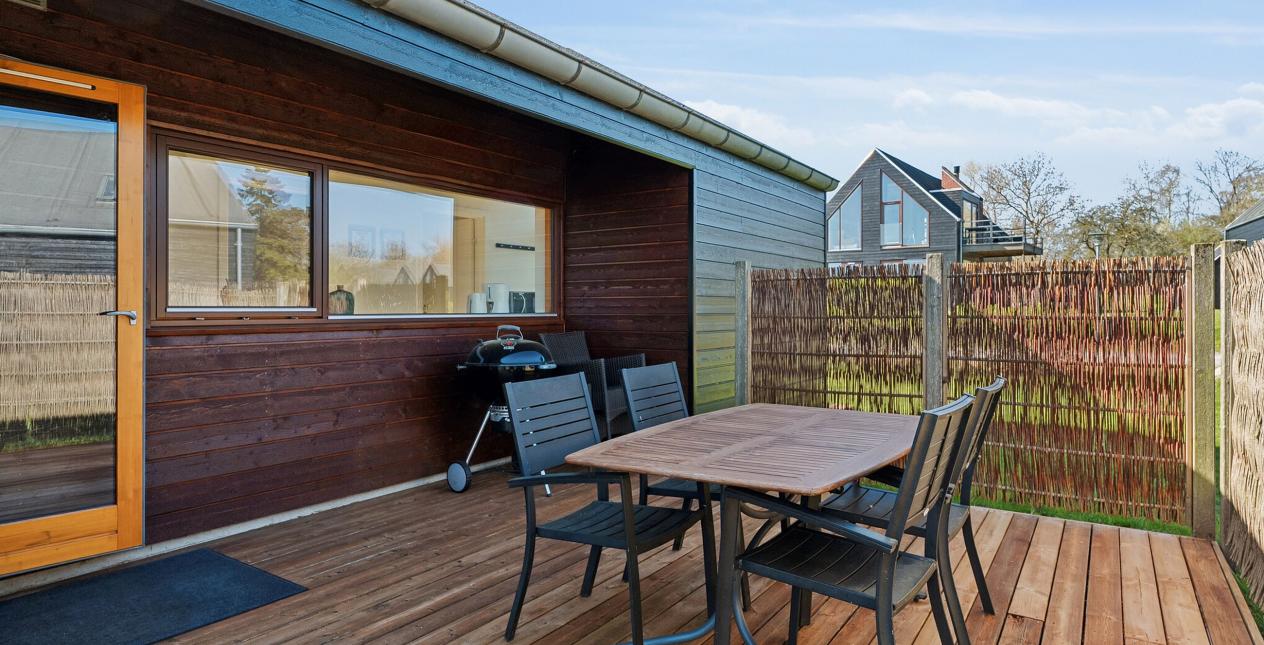 Dette skønne arkitekttegnet fritidshus byder på en skøn atmosfære, loft til kip, masser af lysindfald, god plads til hele familien og hvor huset falder utroligt smukt ind i områdes vidunderlige natur. Hele familien kan samles til grillhygge og mange gode frokoster på den store træterrasse og det store fællesområde.