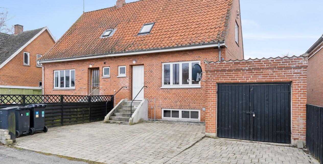 Hus i 3-plan centralt i Sakskøbing på 83 m2 beboelse samt 53 m2 kælder. Huset er opført i røde sten, rødt tegltag og størstedelen af døre og vinduer er skiftet løbende fra 2010 og frem. Huset er beliggende på en 476 m2 nem grund. Der er fibernet i ejendommen.