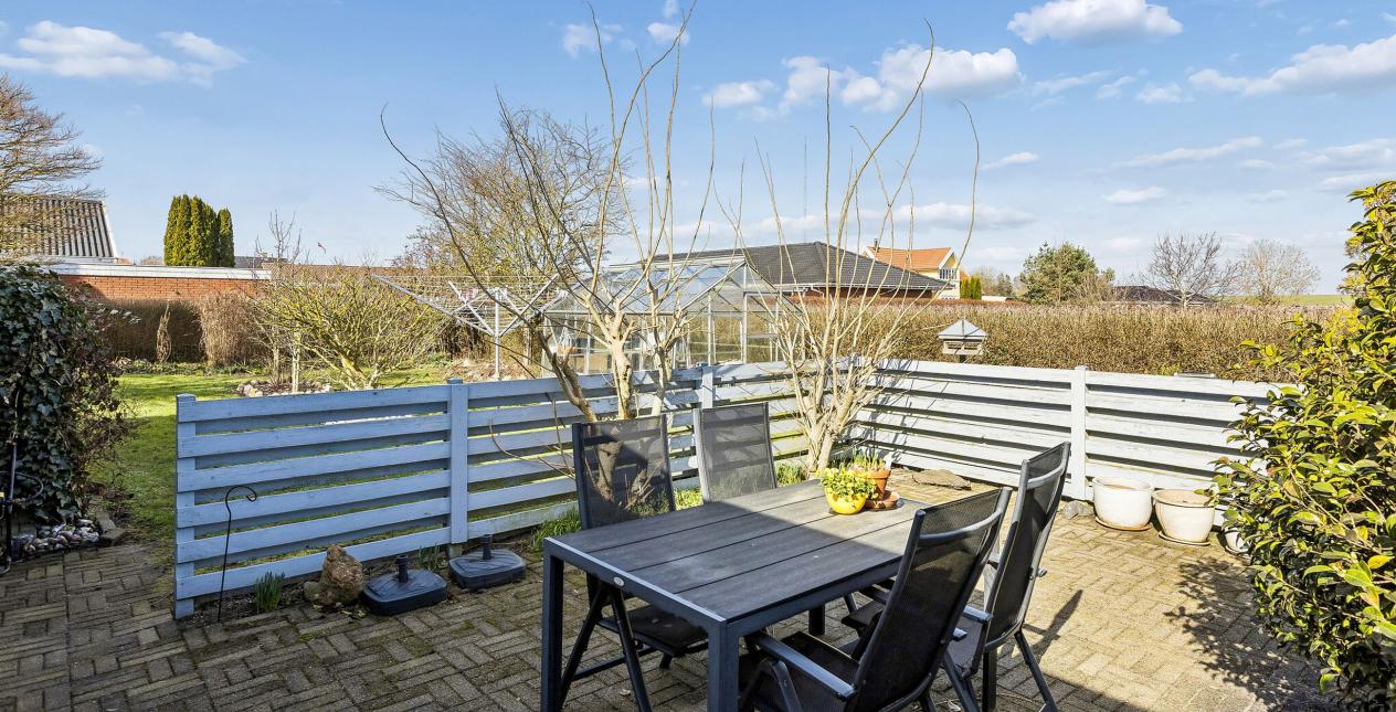 I haven finder du gode terrasser og en hyggelig grund.