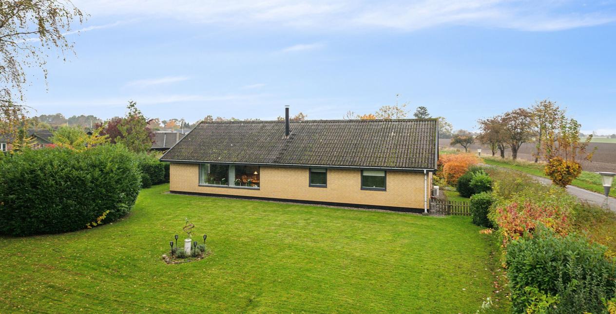 Udvendigt har du en dejligt lukket grund der byder på flere solkroge og plads til boldspil og aktiviteter. Ydermere har du for enden af den flisebelagte indkørsel en stor dobbelt carport med indbygget udhus. Der er yderligere overdækket areal med plads til havemøbler.