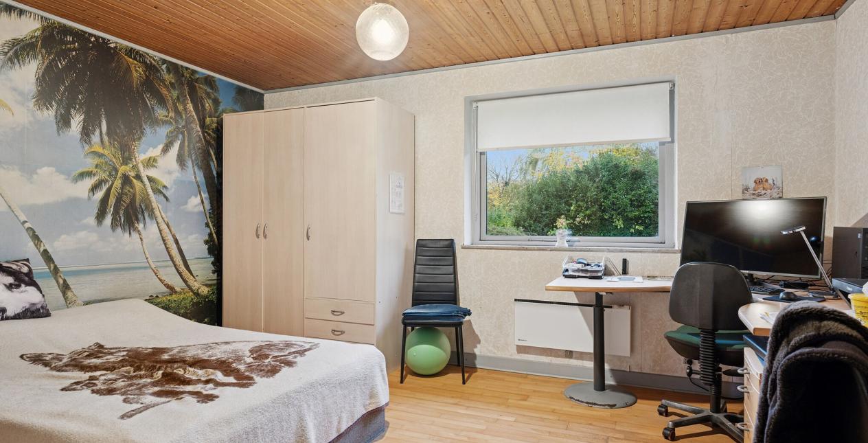 Udover over den gode værelsesafdeling byder boligen på en skøn og rummelig stue hvor du her både har plads til stort sofaarrangement og spisebord. Hele stuemiljøet fremstår indbydende da du har et super naturligt lysindfald fra de store vinduespartier.