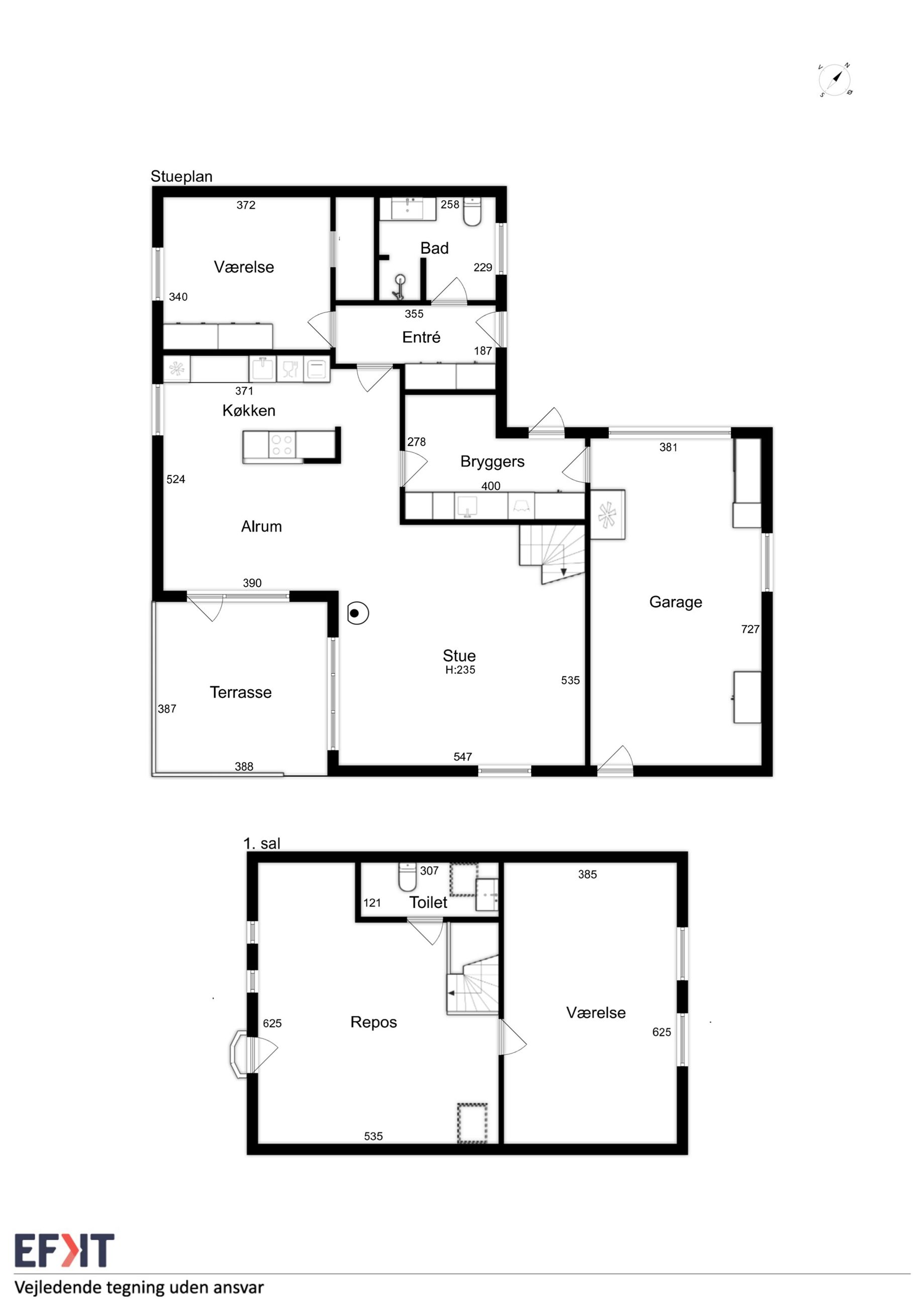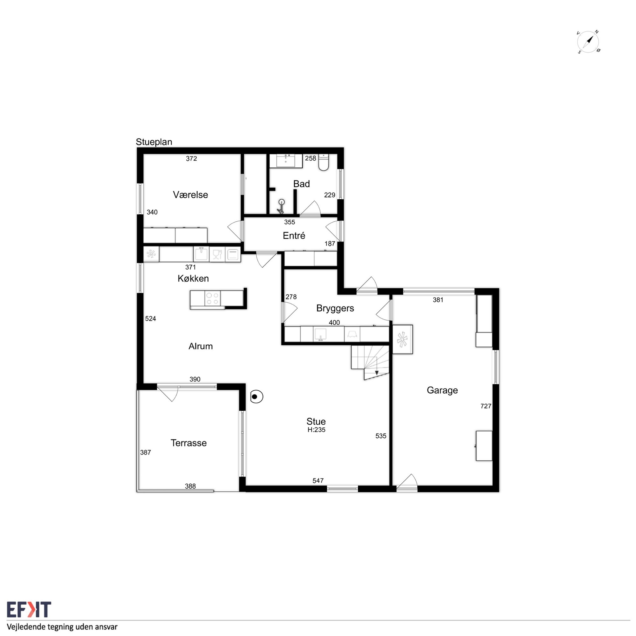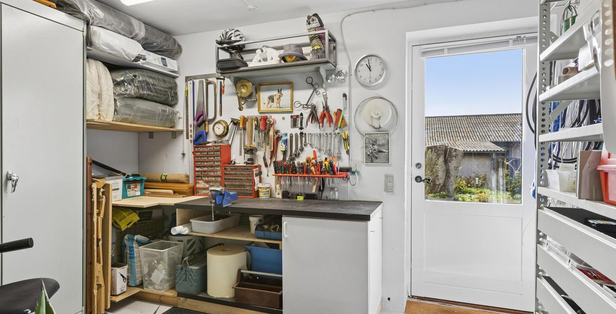 Ejendommen er velindrettet med en dejlig rummelig entré, med god garderobeplads. Fint, lyst badeværelse med pæn sanitet, bruseniche og gulvvarme. Et stort soveværelse med klædeskab OG walk in closet! Bryggerset er rummeligt og velindrettet, med super god plads, Genvexanlæg, arbejdsbord, vaskemaskine og har adgang til indkørsel, samt direkte til en dejlig stor garage, med port. Et super hyggeligt og smagfuldt moderniseret åbent køkken med spiseplads og udgang til sydvendt, ugeneret terrasse. Stuen fremstår lys, med god plads og pilleovn. Fra stuen er trappen til husets 1. sal, som med et fantastisk lysindfald giver liv til en stue og et værelse. Der er mulighed for at opdele rummene til ekstra værelser. Endvidere rummer 1. salen et fint toilet.