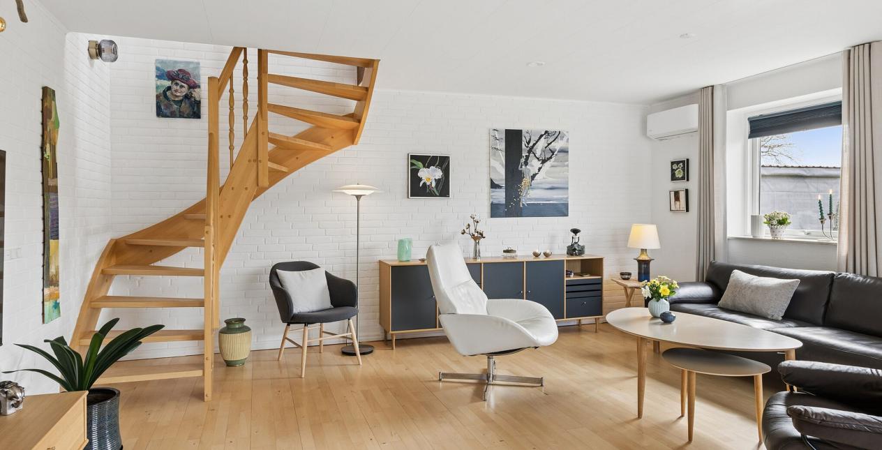 De 163 m2 beboelse emmer af charme og ønskes ekstra værelser, vil det ikke være det store byggeprojekt. Haven er velanlagt og overskuelig på den 775 m2 store grund.