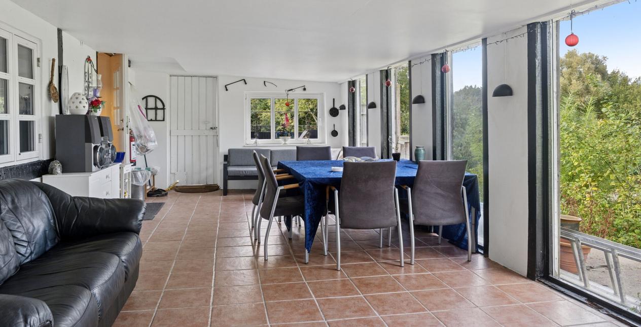 Desuden er der stor "udestue" med flisegulv, varmepumpe og fantastisk udsigt ud over den gamle grusgrav. Gildesal med flisegulv, bar og masser af muligheder. Stor fliseterrasse med udsigt over den gamle grusgrav. Skur (ikke godkendt på bbr). Carport.