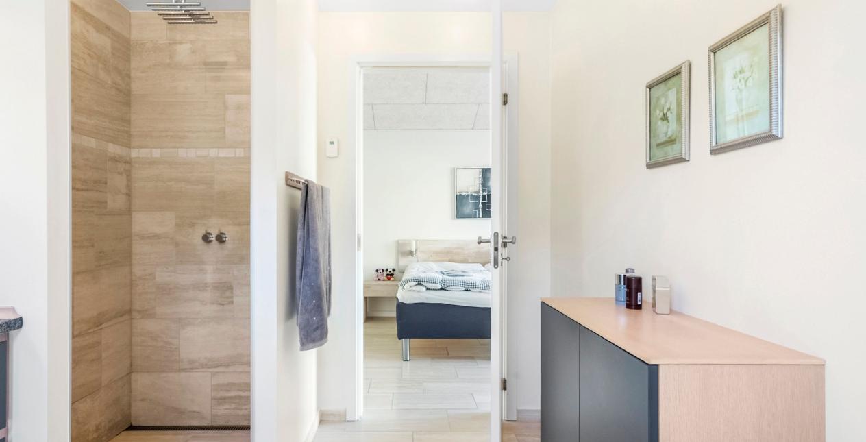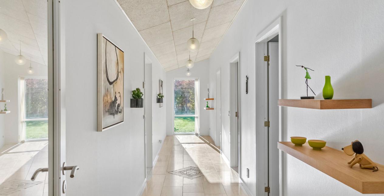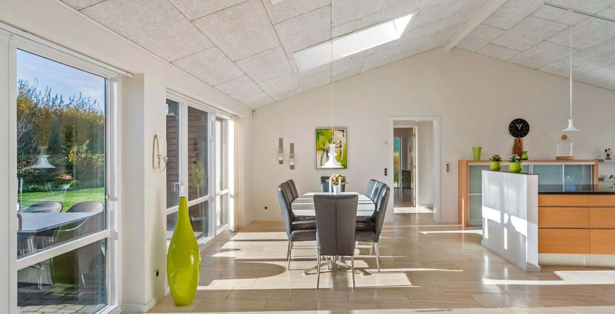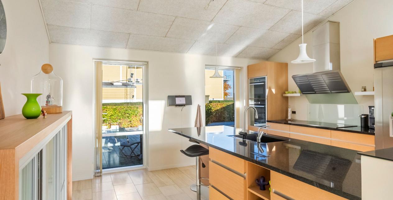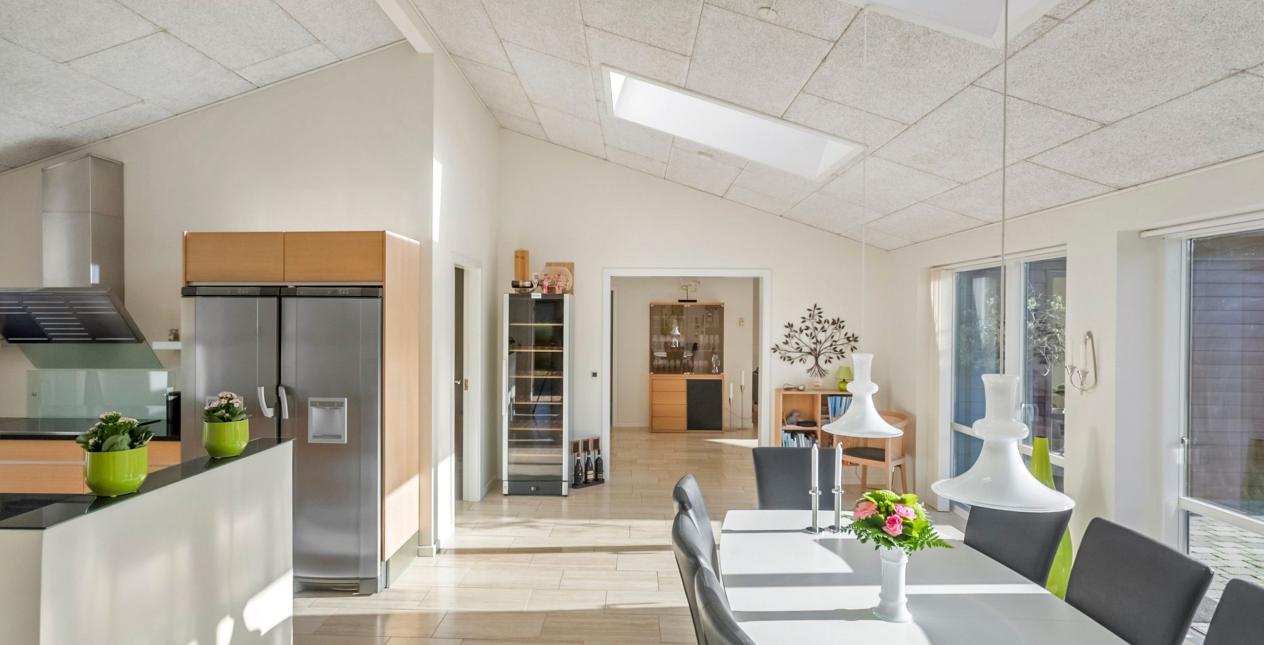 Villaen imponerer fra første øjekast med sine troltekt lofter til kip og gulvvarme overalt, hvilket sikrer en behagelig atmosfære året rundt. Køkkenet er udstyret med elementer fra Svane køkken og Vola armaturer i badeværelserne understreger det høje kvalitetsniveau. Den børnevenlige afdeling byder på to værelser med hems samt et stort badeværelse - perfekt til familiens yngste medlemmer.