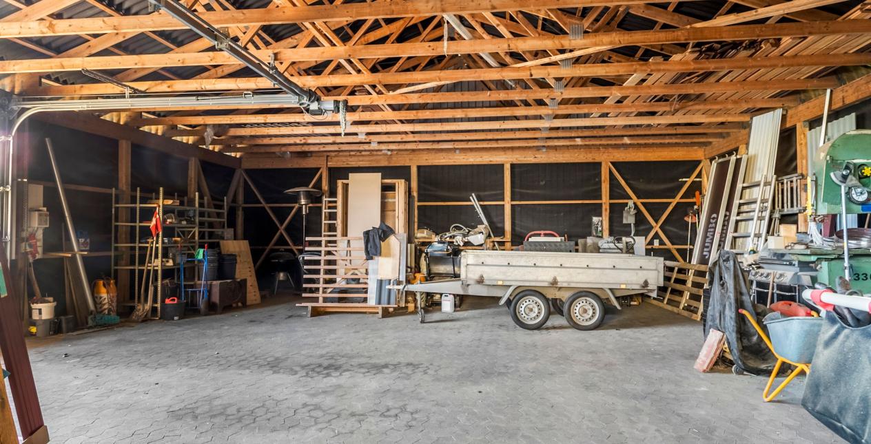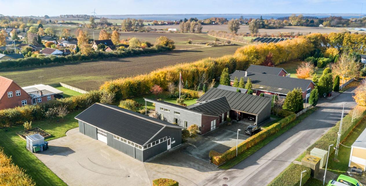 Udenfor strækker grunden sig over imponerende 3.000 m2, men kræver minimal vedligeholdelse takket være dens nemme indretning. Til ejendommen hører også et stort værksted på 200 kvadratmeter fra år 2000, som inkluderer et nyrenoveret eternittag og beklædning. Her finder du både et værksted/hobbyrum på 80 m2 samt garageanlæg på hele 120 m2 - perfekt for gør-det-selv-entusiasten eller bilentusiasten.