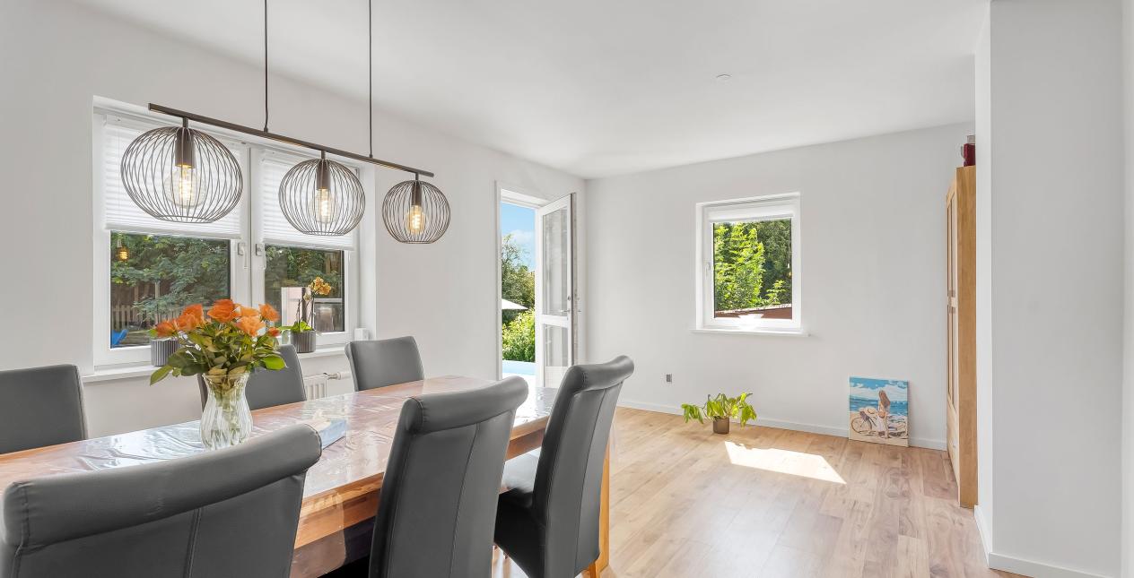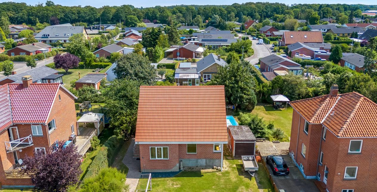 Her er du både tæt på skoven, byens faciliteter, indkøb og alt det praktiske, som gør at en børnefamilies hverdag fungerer så optimalt som muligt. Der er gå afstand til togstationen