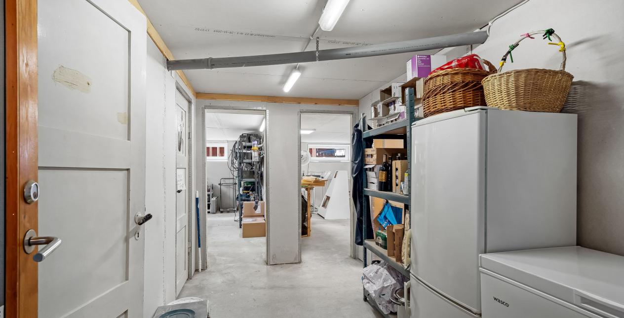 God kælder med god lofthøjde. Vaskerum og gode disponible rum, som har mange anvendelsesmuligheder.