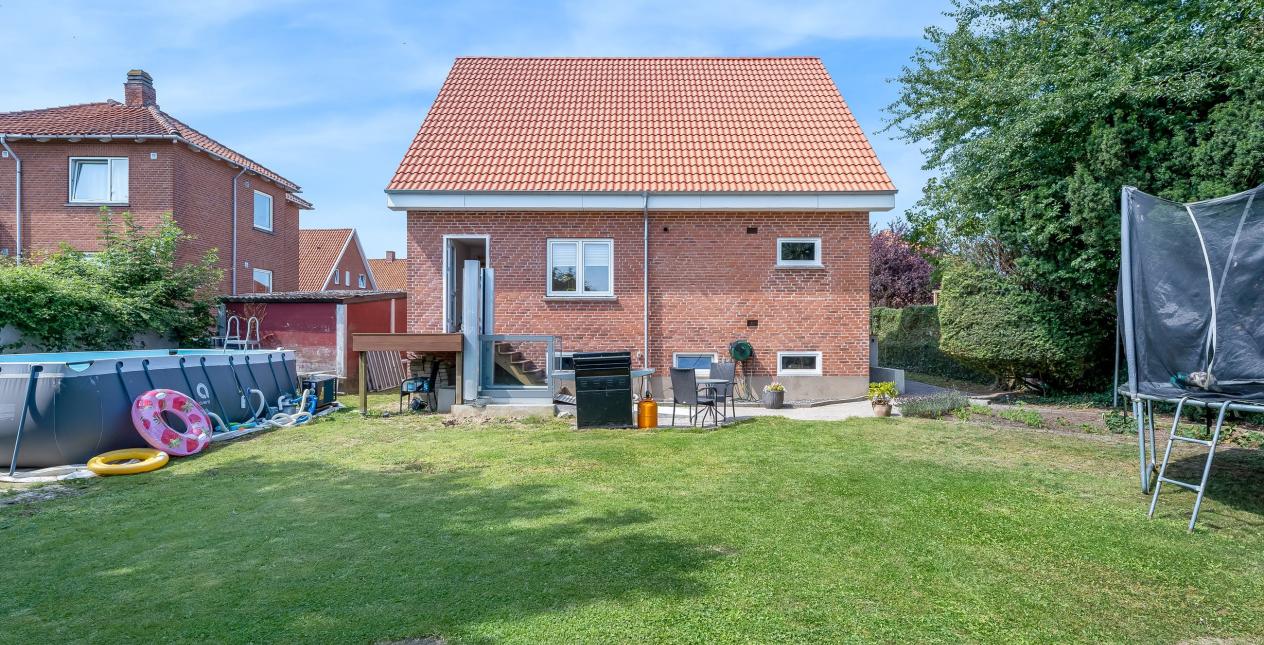 Grunden er på 657 m2, pænt beplantet med lille forhave og en skøn have bag huset, som er ugeneret og anlagt til familie hygge, terrasse og varieret beplantning. Dejlig nem at holde.