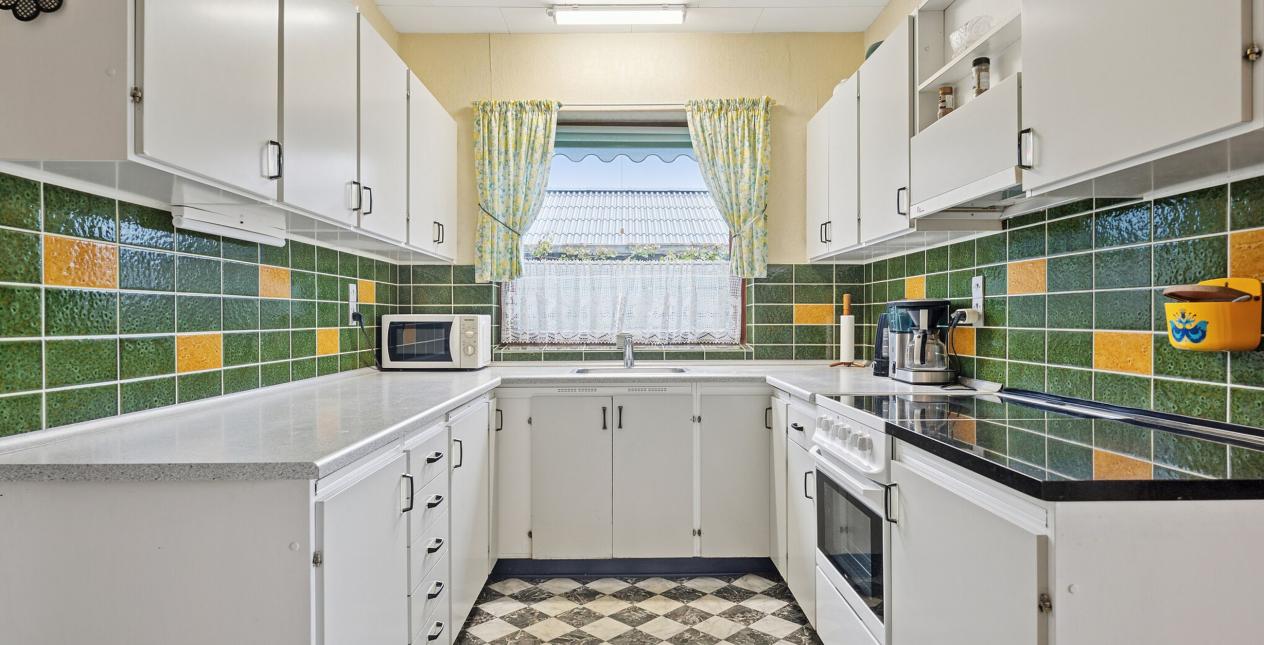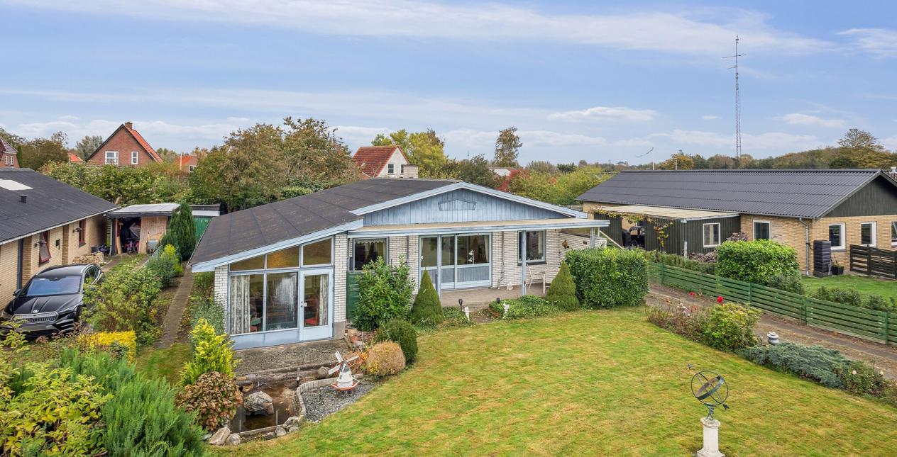 Velholdt 1-plansvilla på 168 m2 i hvide sten med eternittag. Den ligger på en 770 m2 lukket grund - lidt afsides på en blind vej i udkanten af et udbygget villakvarter med plantage som genbo. Den ligger med kort cykelafstand og gangbro til skole, børnehave, indkøb (Guldborgsundcentret) m.m. i Sundby - og få minutters gang til bus. Huset opvarmes med fjernvarme.