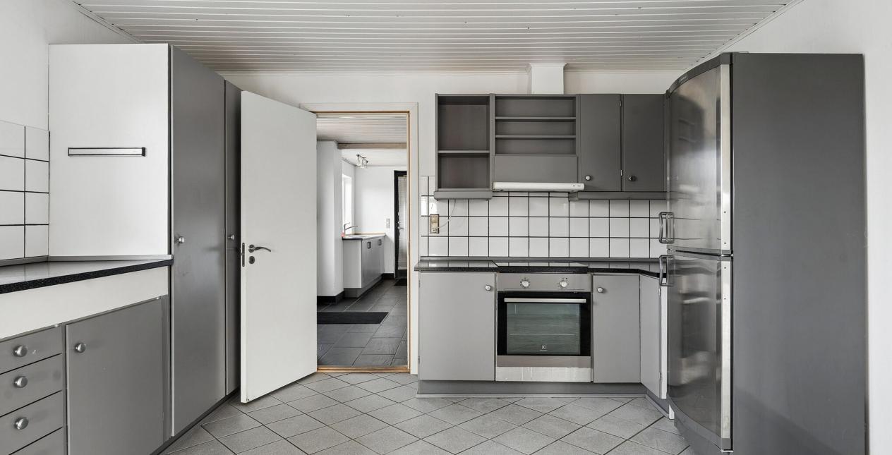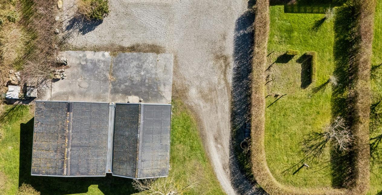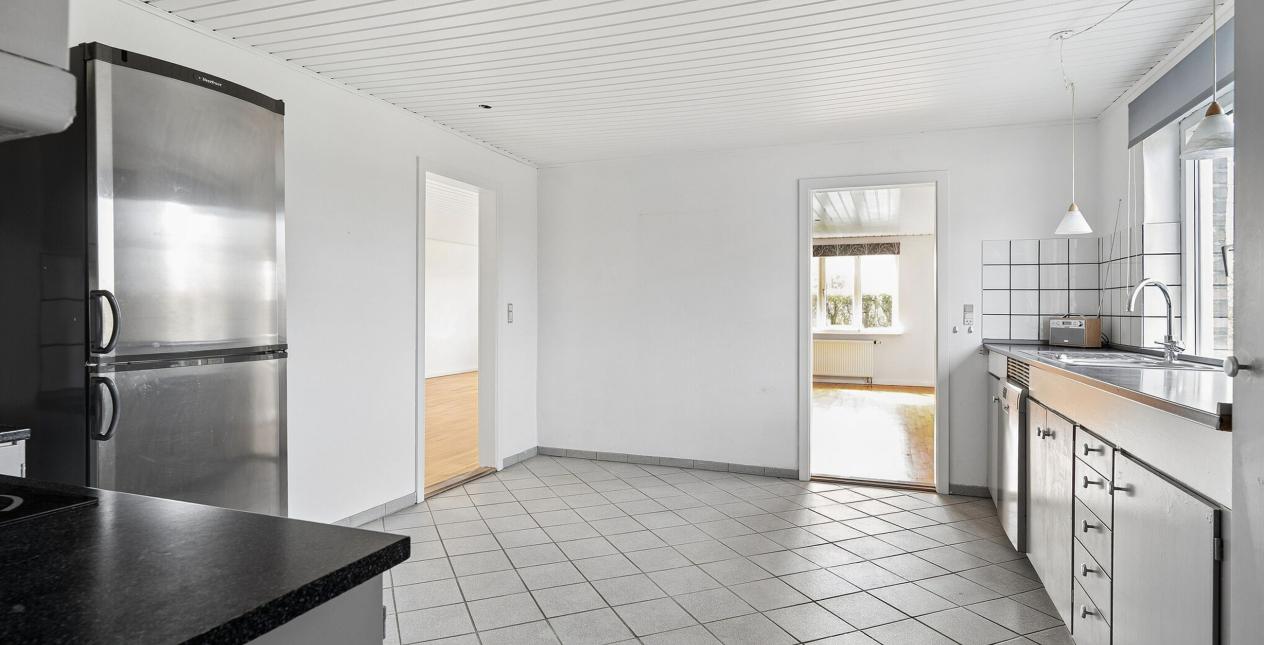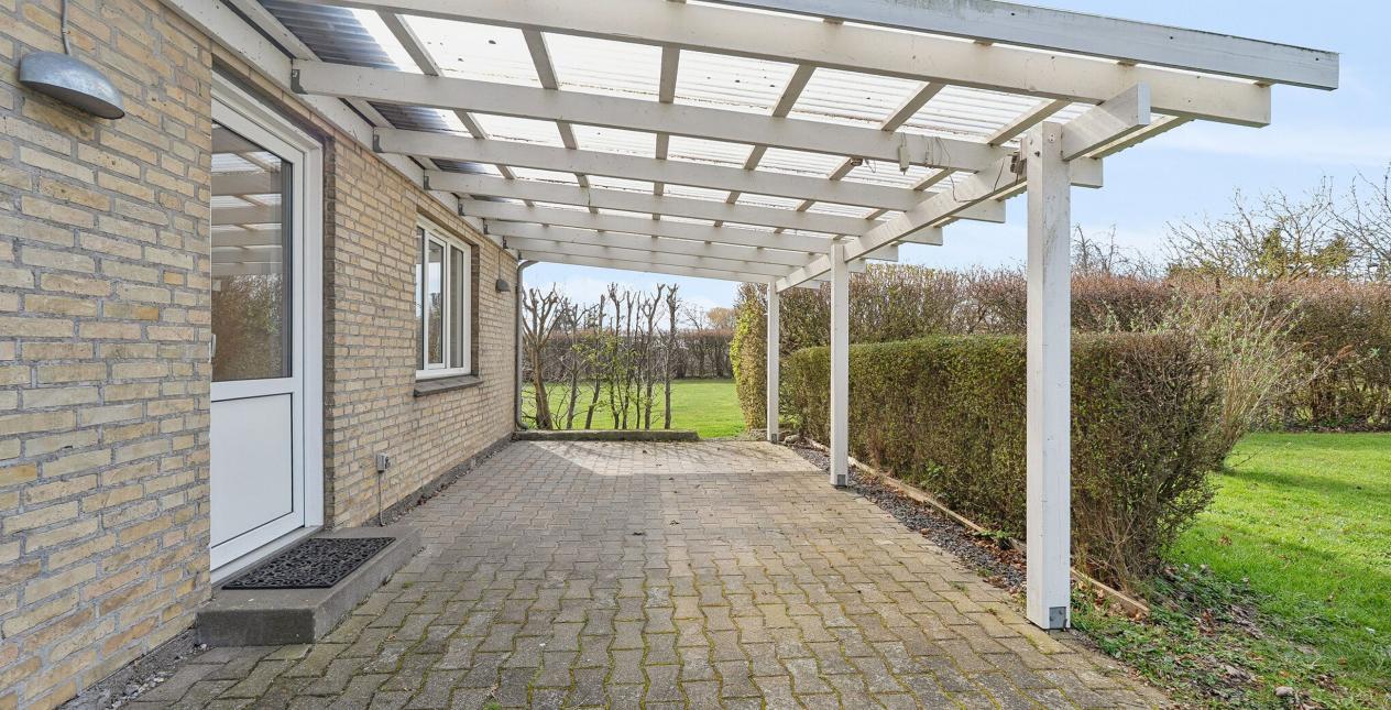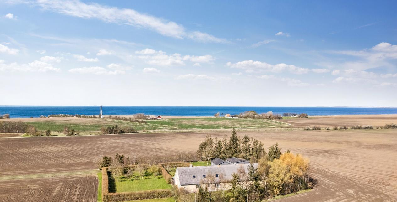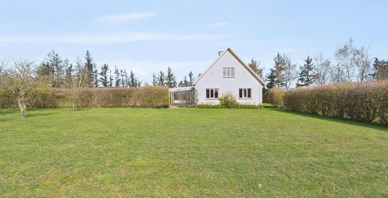 Nedlagt landejendom med dejlig og naturskøn beliggenhed ud til åbne marker og 1 km. til vandet. Stor grund på 13.245 m2, med et godt jordstykke til dyrehold. Cirka 2/3 af jorden er pt. forpagtet af en landmand, men kan tages retur til ejendommen. Ejendommen er opført som længehus på 248 m2 med direkte adgang fra beboelsen til garage og tidligere stald. Ejendommen er opført i gule mursten med eternittag.