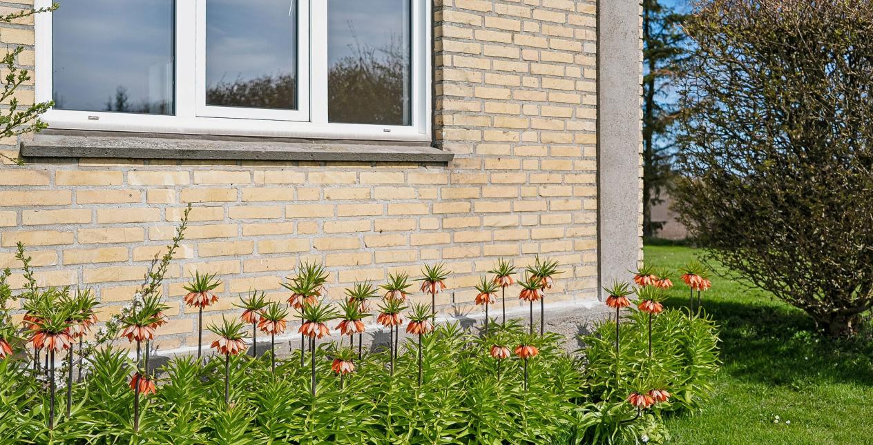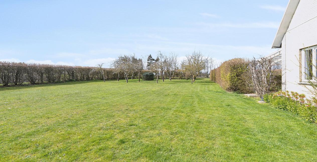 Meget velholdt og velanlagt have, stor gårdsplads, terrasse og dejlig frugthave.