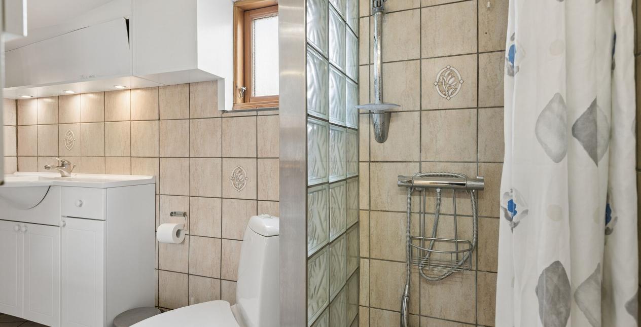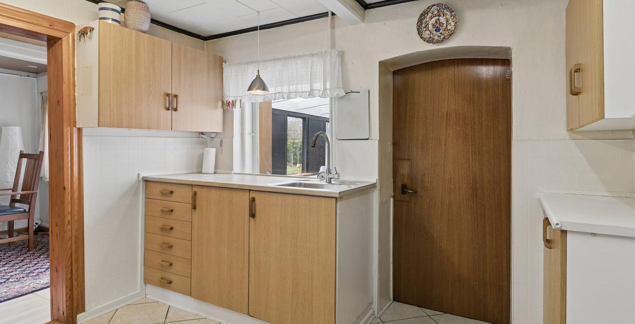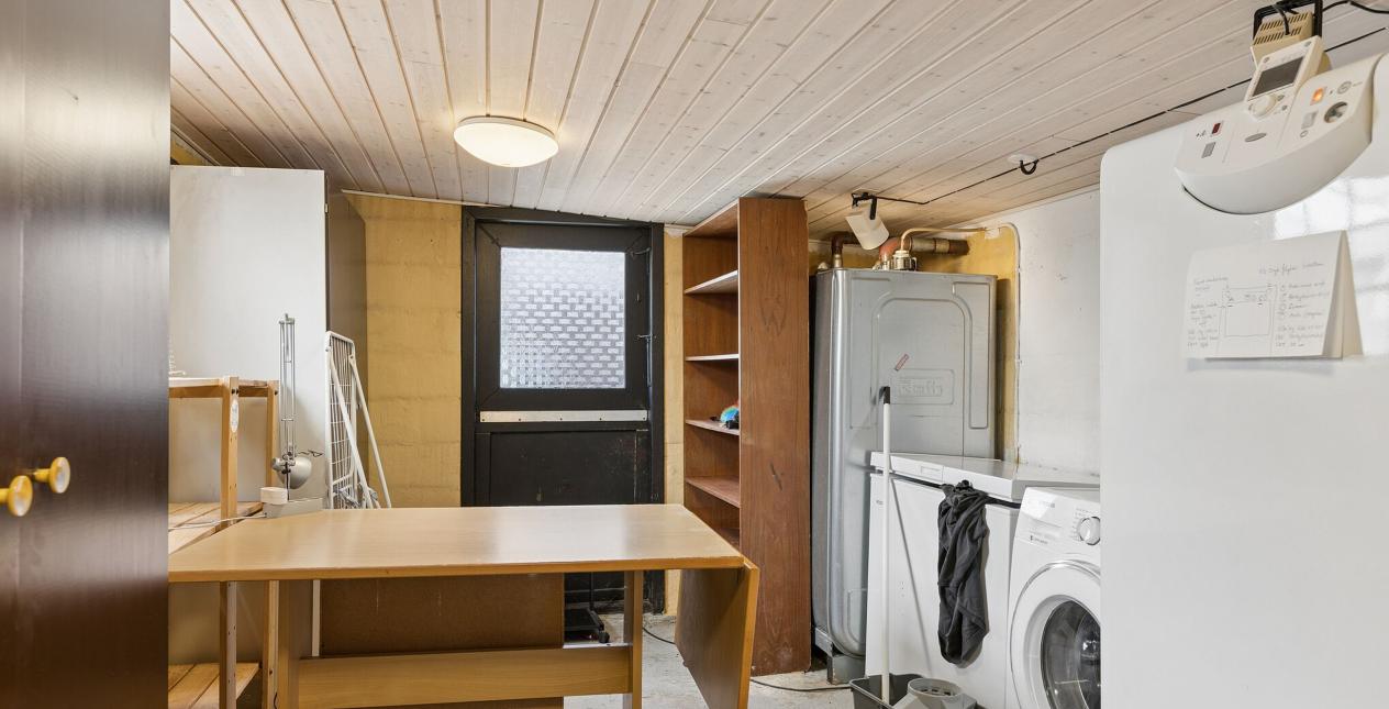 Fra køkkenet har du udgang til bryggerset med plads til vaskemaskine. Herfra udgang til hyggeligt overdækket areal (overdækning er ikke registreret på BBR).