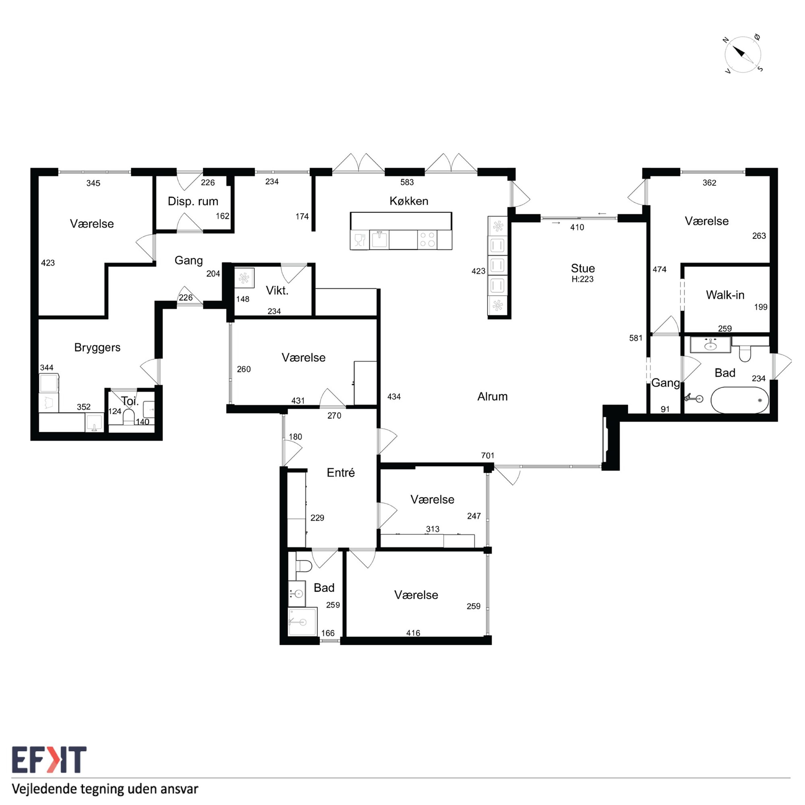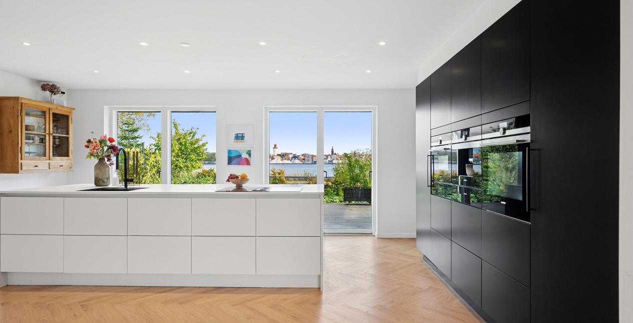Huset byder på et imponerende køkken/alrum, hvor børnene kan hygge sig i den charmerende alkove, mens du nyder udsigten eller tilbereder måltider. Det åbne rum flyder naturligt ud mod den store træterrasse, der inviterer til udendørs ophold og afslapning ved vandet. Derudover rummer ejendommen et viktualierum samt et kontorområde, perfekt til hjemmearbejde eller studier.