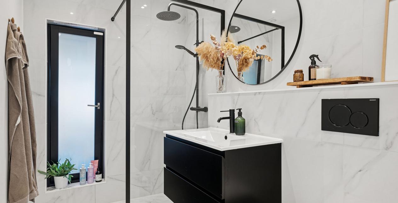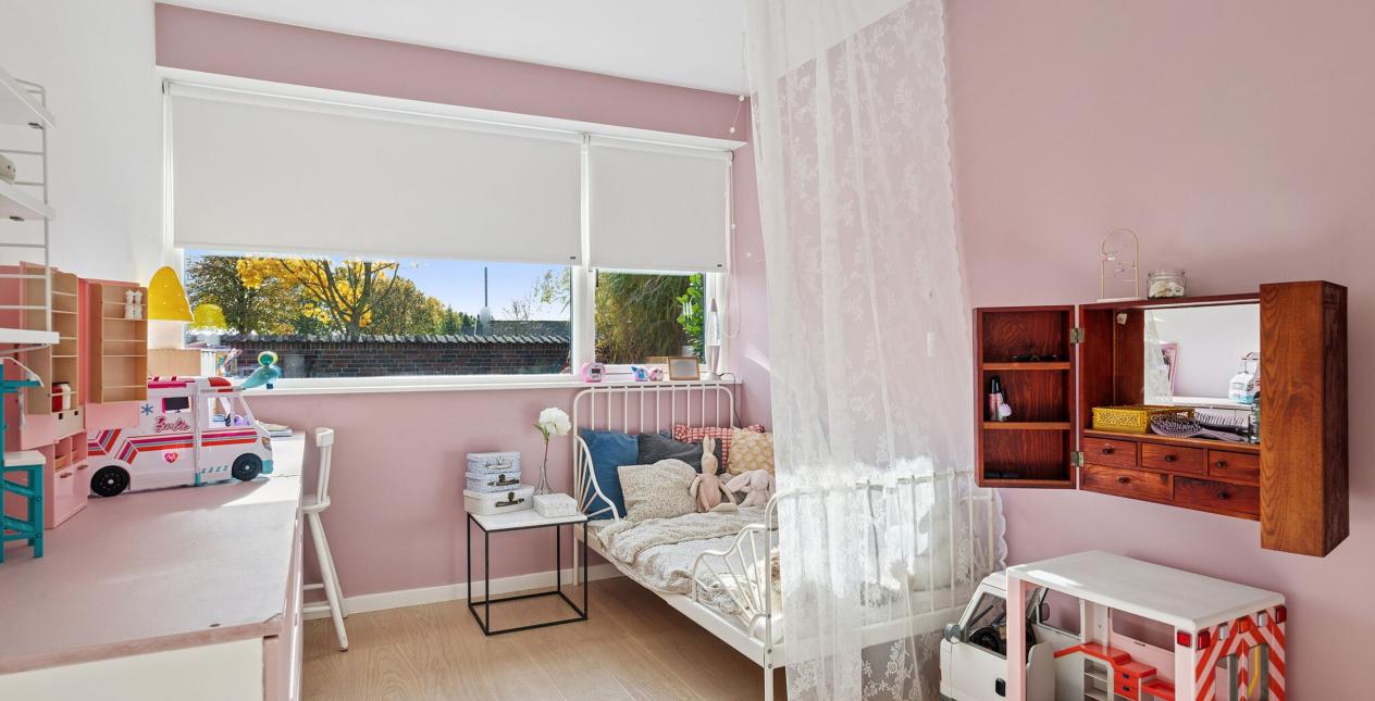 Forældreafdelingen er en oase af ro med sit soveværelse komplet med walk-in closet og et luksuriøst badeværelse. Børneafdelingen består af tre gode værelser samt endnu et flot badeværelse, hvilket sikrer plads og komfort for hele familien. I huset finder du smukke sildebensgulve og behagelig gulvvarme.